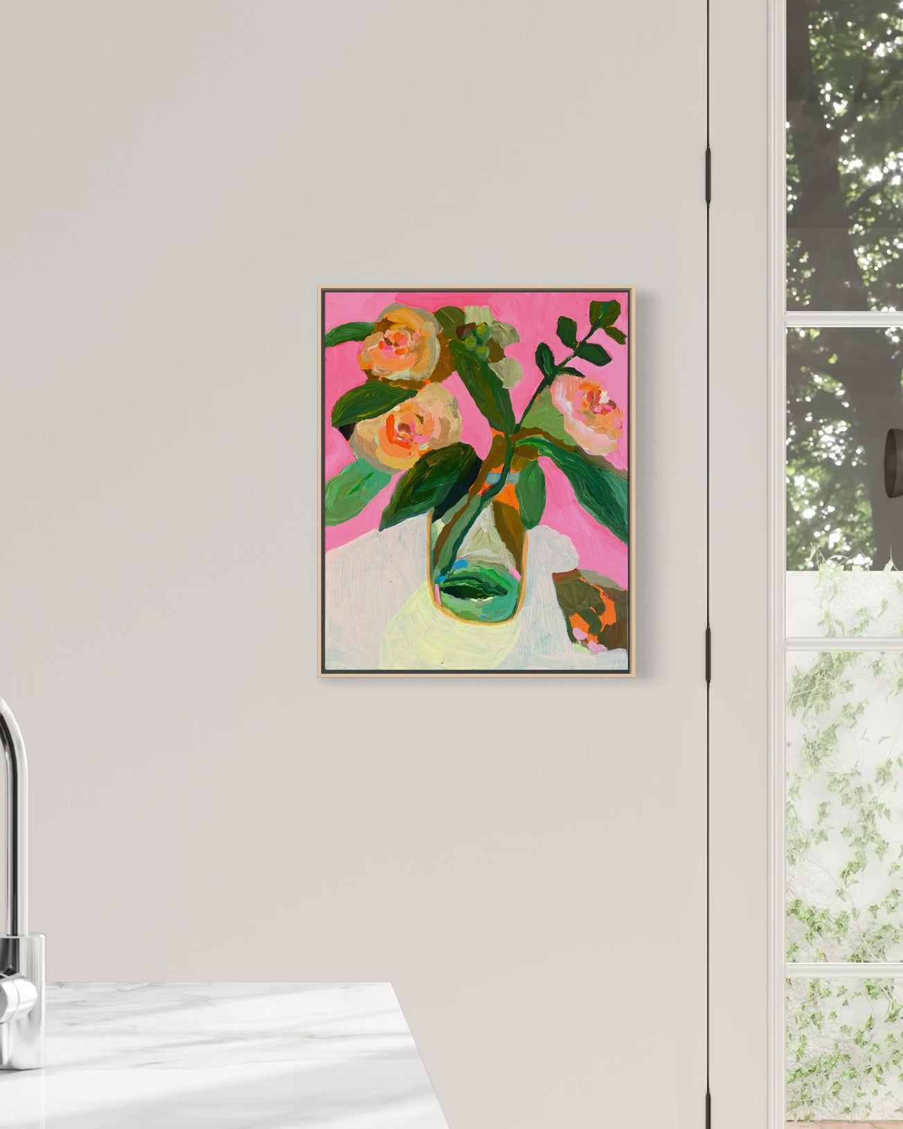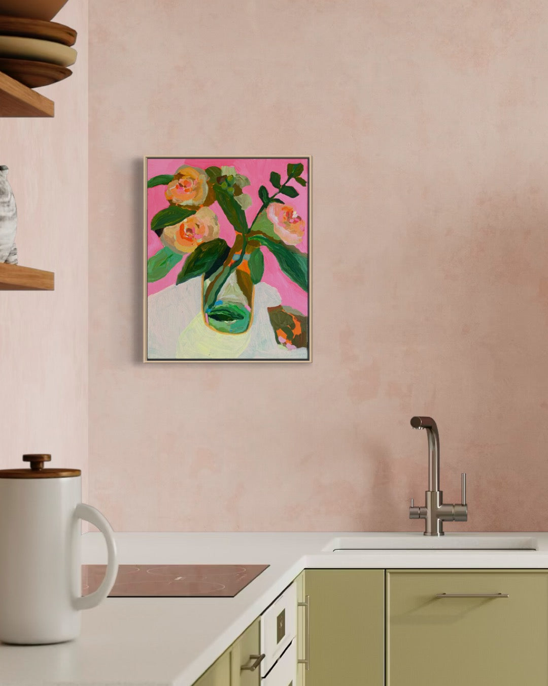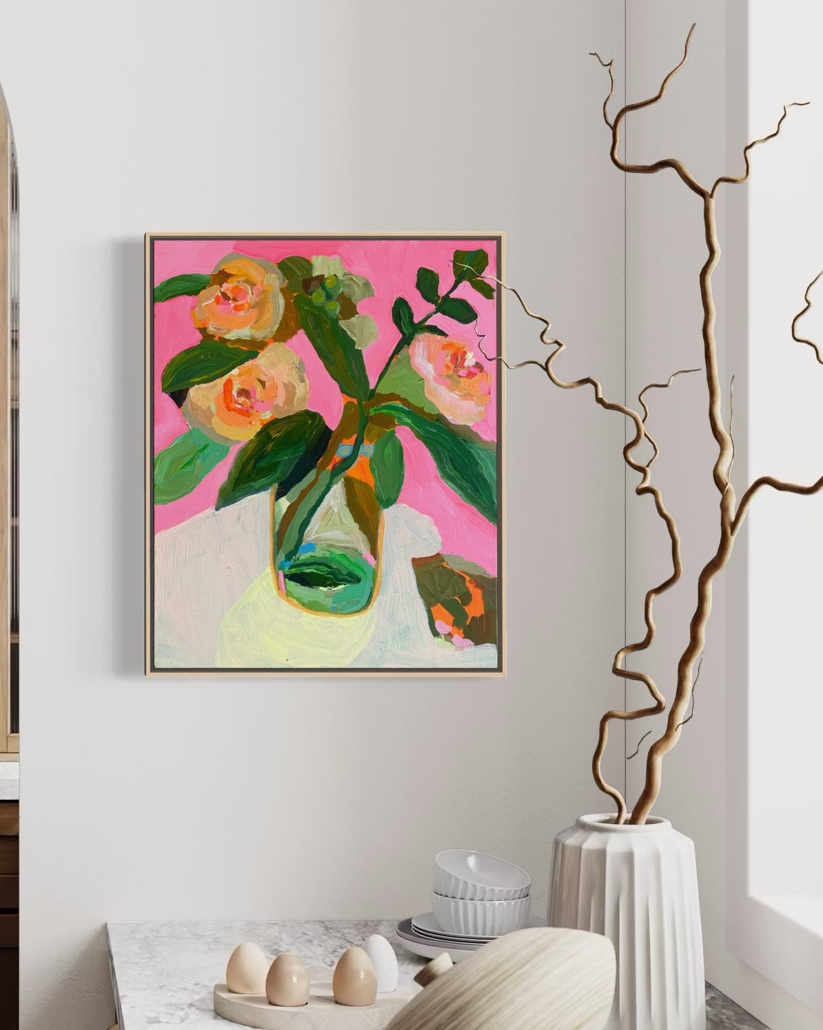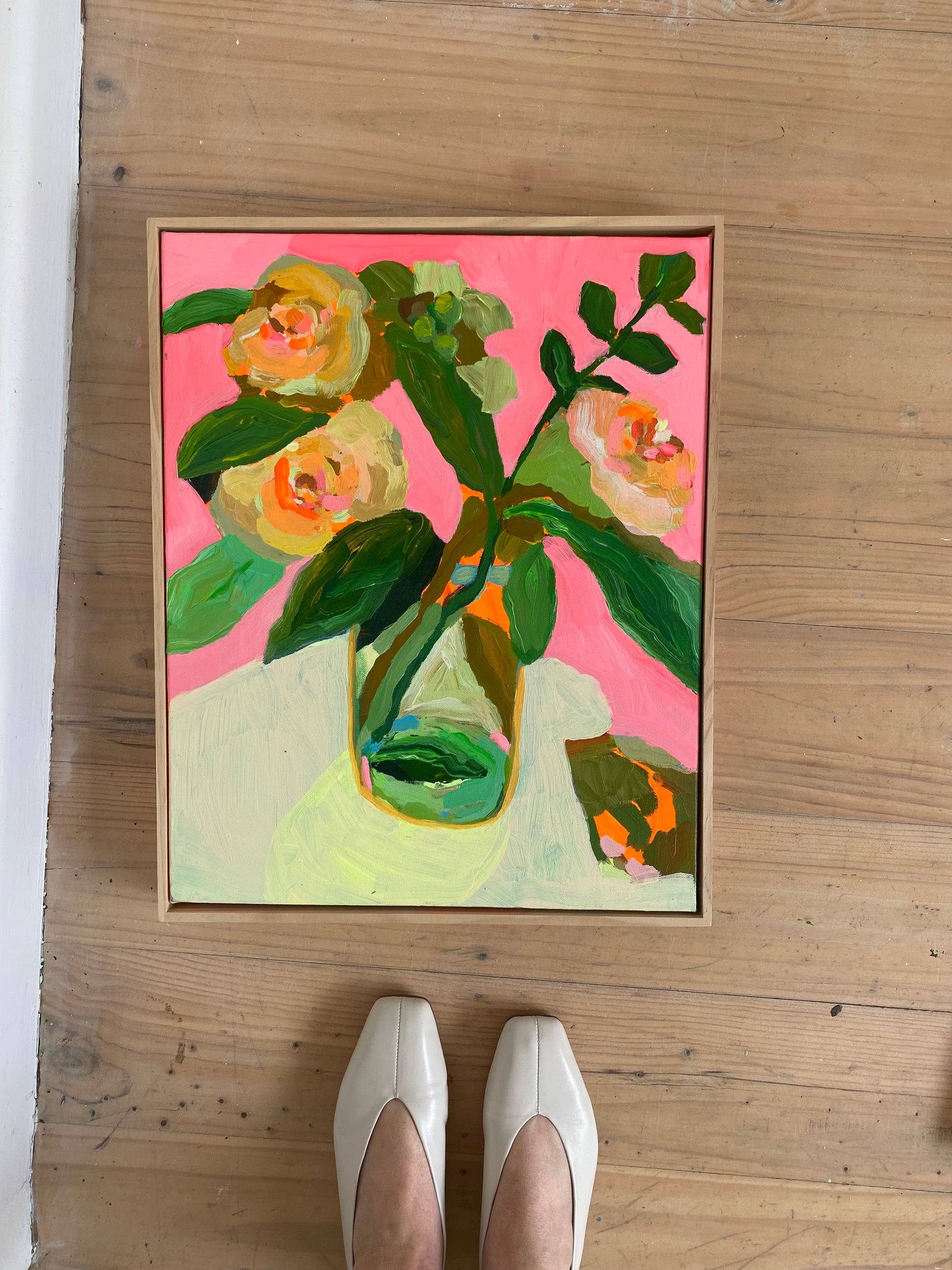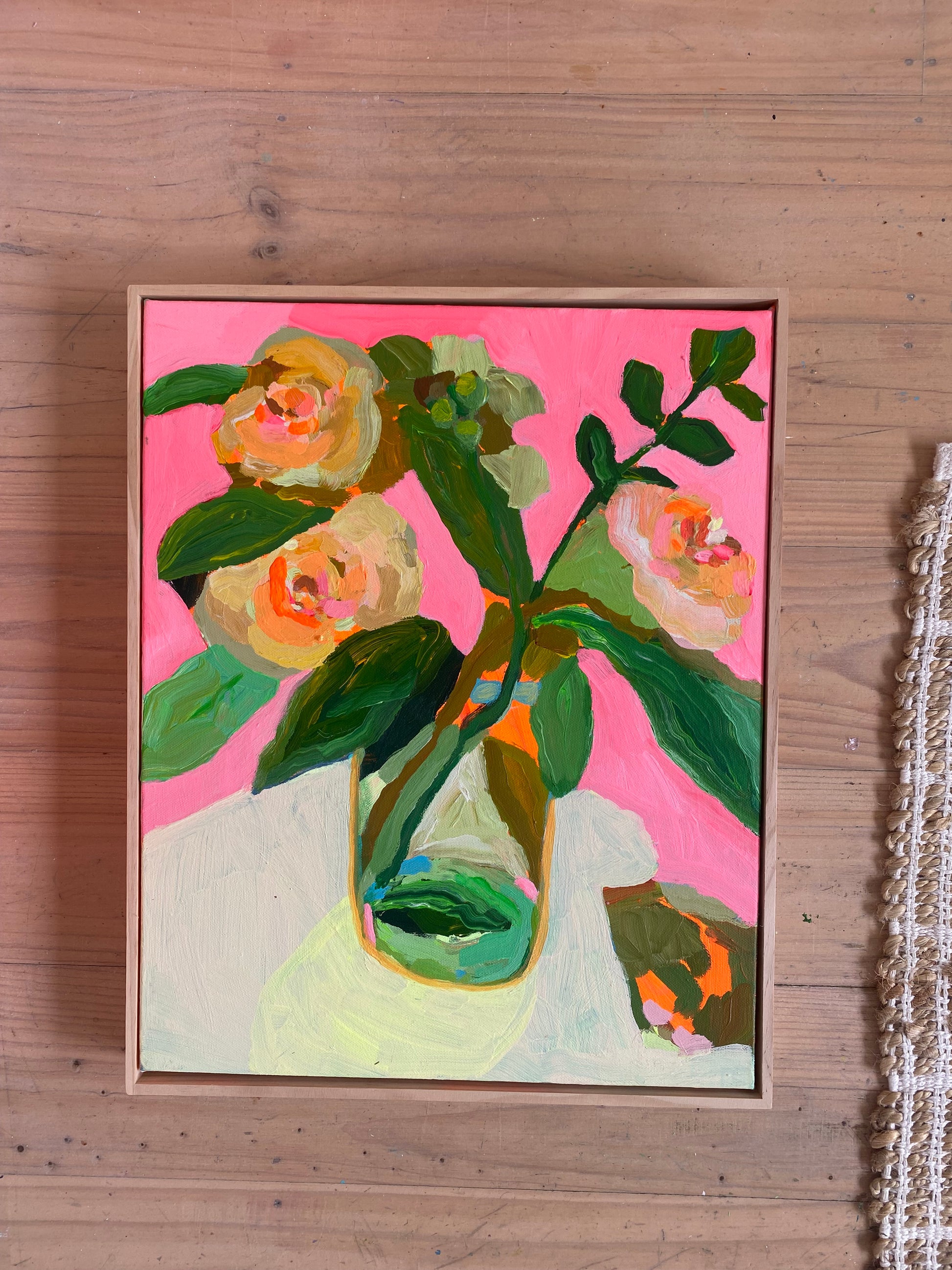Acrylic on canvas, framed in a handmade timber frame.